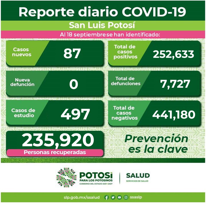 En el Estado se dan a conocer 87 nuevos casos de Covid-19, confirmando el Comité Estatal para la Seguridad en Salud y los Servicios de Salud 252 mil 633 casos totales del virus.