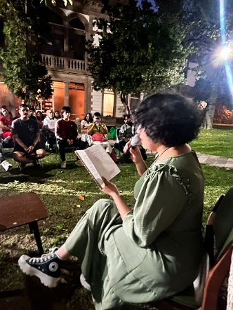 Versos en el jardín, micrófono abierto para poetas, es un proyecto que tiene el propósito de difundir y promocionar la poesía, a sus creadoras y creadores, compartiendo de su propia voz y a su vez escuchando las de otras y otros artistas.