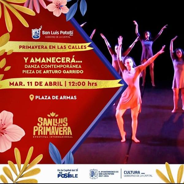 En el marco del II Festival Internacional San Luis en Primavera, la Compañía de Danza Contemporánea Proyecto Coyote presentará “Y amanecerá”; una obra en el que se rinde homenaje al fallecido maestro coreógrafo Arturo Garrido Puga, este martes 11 de abril a partir del mediodía, frente al Palacio Municipal.